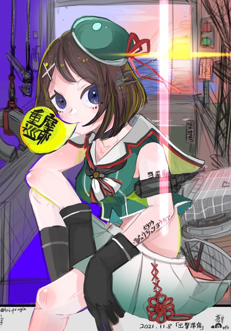 春日丸とデパート屋上遊園地で休暇。 しばふ艦おいも達のもちもちほっぺ大好き 半袖寒そうだから暖かい格好しようね #艦これ版深夜の真剣お絵描き60分一本勝負 #艦これ版真剣お絵描き60分一本勝負_20210919 #春日丸 #大鷹 #艦これ