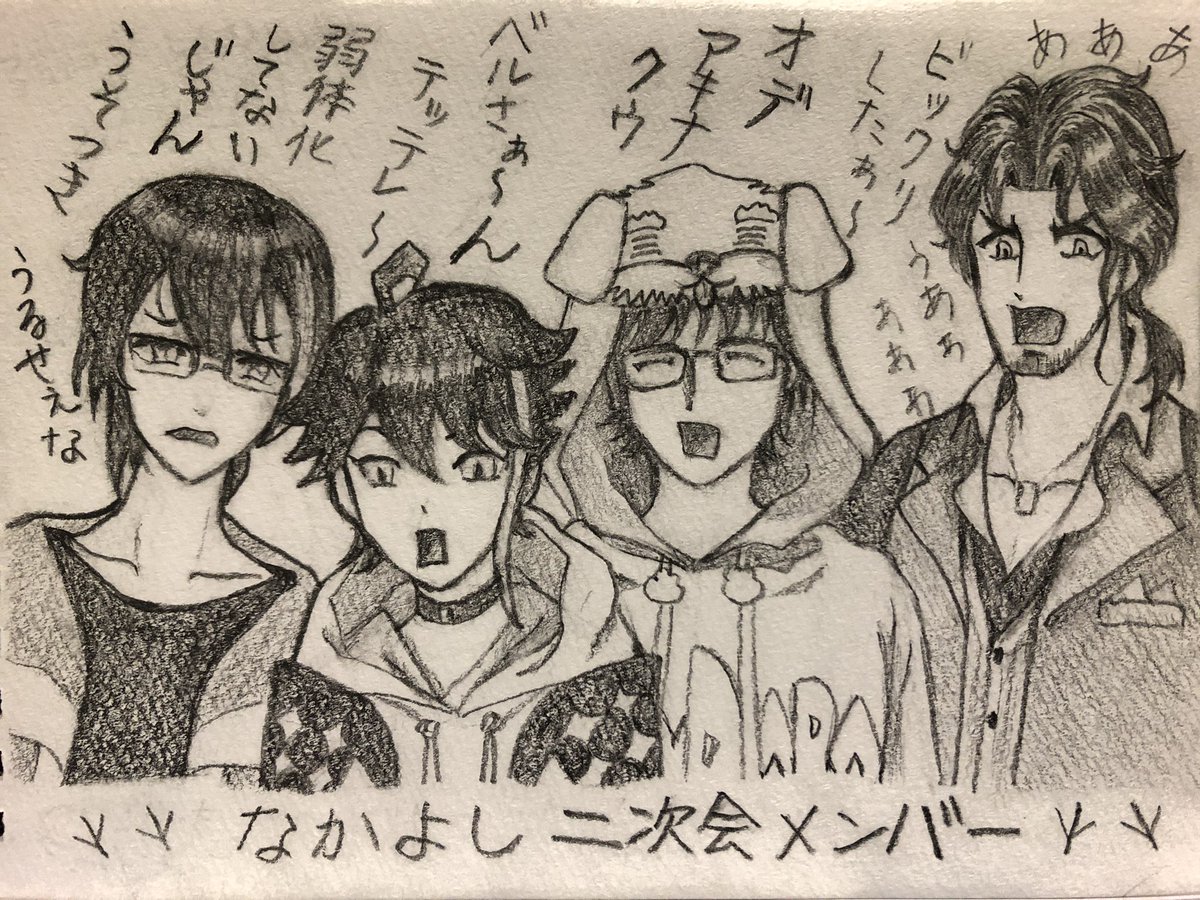 先日のホラーゲーム🐓 4人がとても楽しそう〜!!😁 #灰画 #さ絵ぐさ #デラスのお品書き