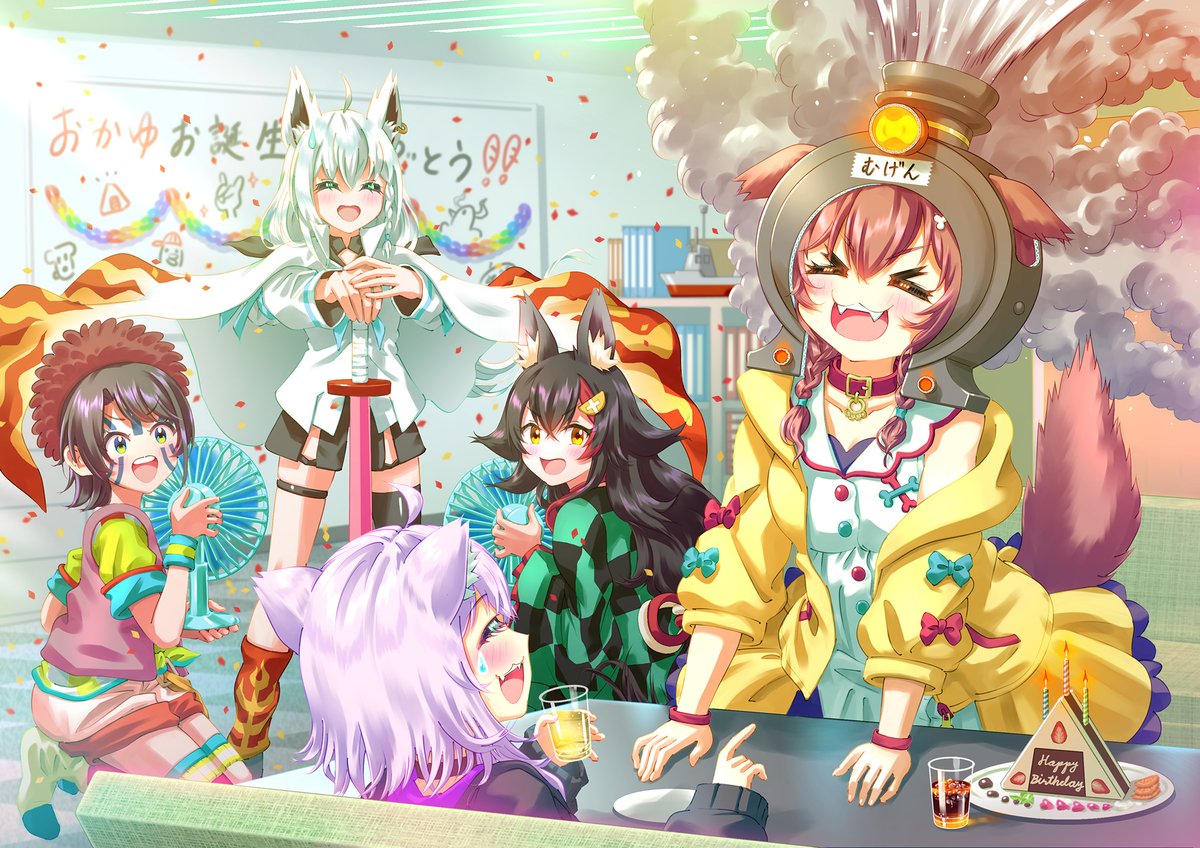 おかゆちゃん、お誕生日おめでとうございます!🎂㊗️ 楽しい配信、いつもありがとうございます。 応援しております! #絵かゆ #できたてころね #絵フブキ #みおーん絵 #プロテインザスバル #猫又おかゆ生誕祭2022 #猫又おかゆ生誕祭