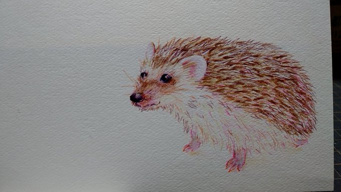 ハリネズミ描いたった #色鉛筆画 #色鉛筆イラスト #ハリネズミ