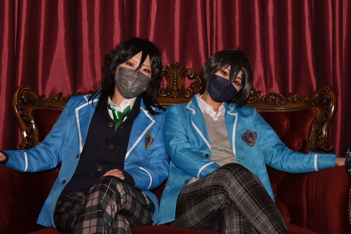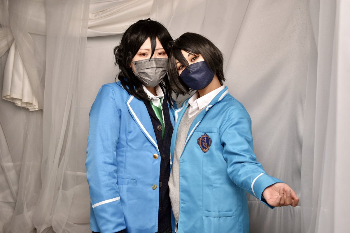 ⚠️Cosplay⚠️ enst!!/SHUFFLE 静寂の黒雪 -La Mort- 朔間零:ゆーみちゃん(@yumi_kosuaka ) 白雪たちのMerry Xmas -branco- 紫之創:ぴよ だいすきゆーみちゃんと🫶🏻💜 念願の白と黒です❄️ #アコスタ福岡PayPayドーム