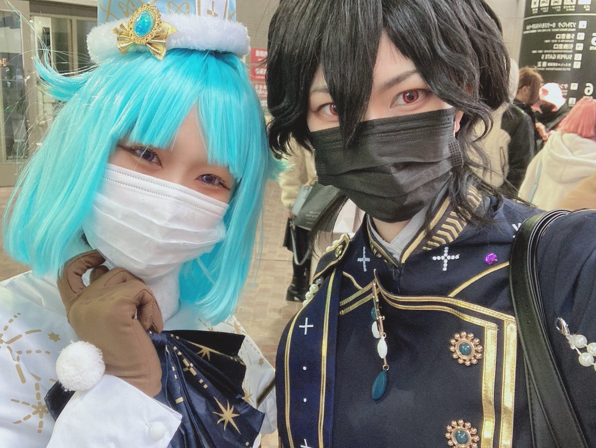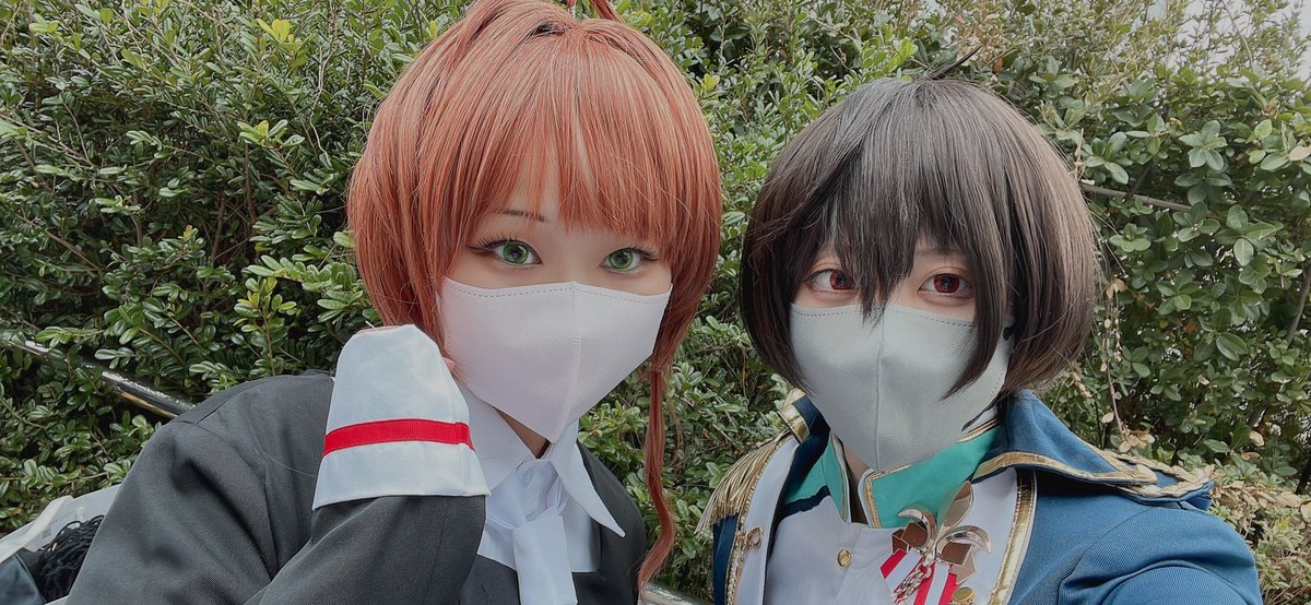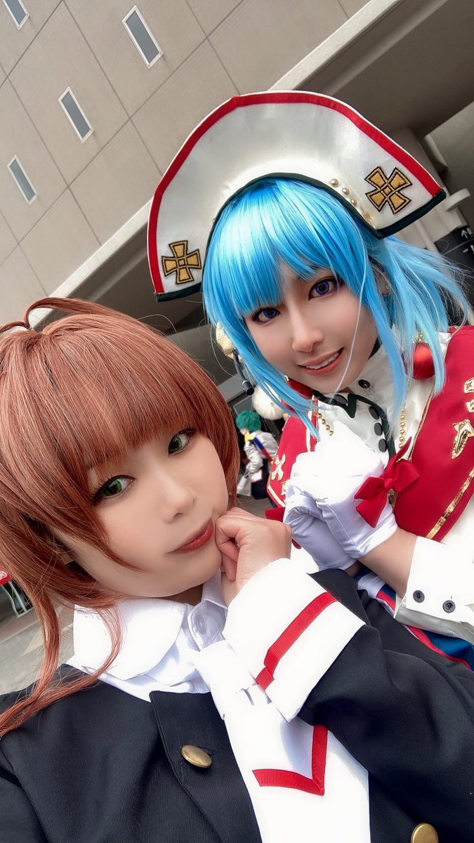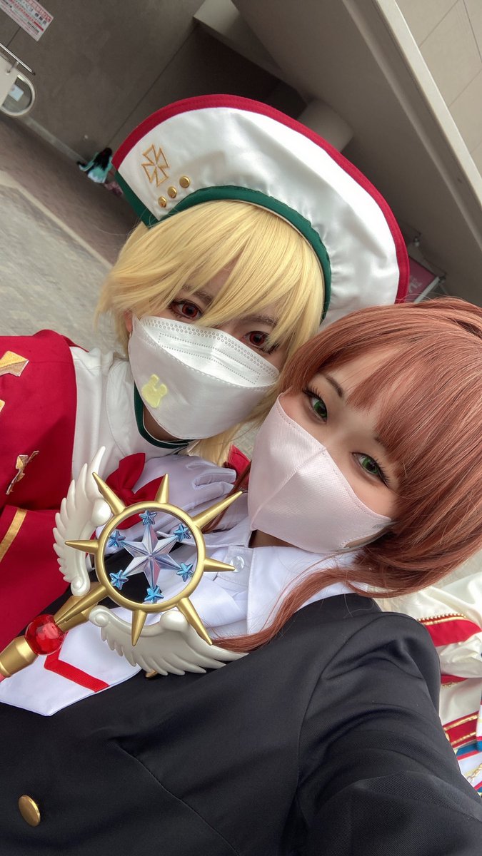 ⚠️Cosplay⚠️ 世界線は違うけど…… 厄介なお兄ちゃんに好かれてるもの同士🌸⚜️ 素敵な凛月くんとお写真撮れて嬉しかった☺️🤍 enst!!/朔間凛月 まふゆちゃん(@mahuyu_x_x ) ccさくら/木之本桜 碧月ぴよ #アコスタ福岡PayPayドー厶