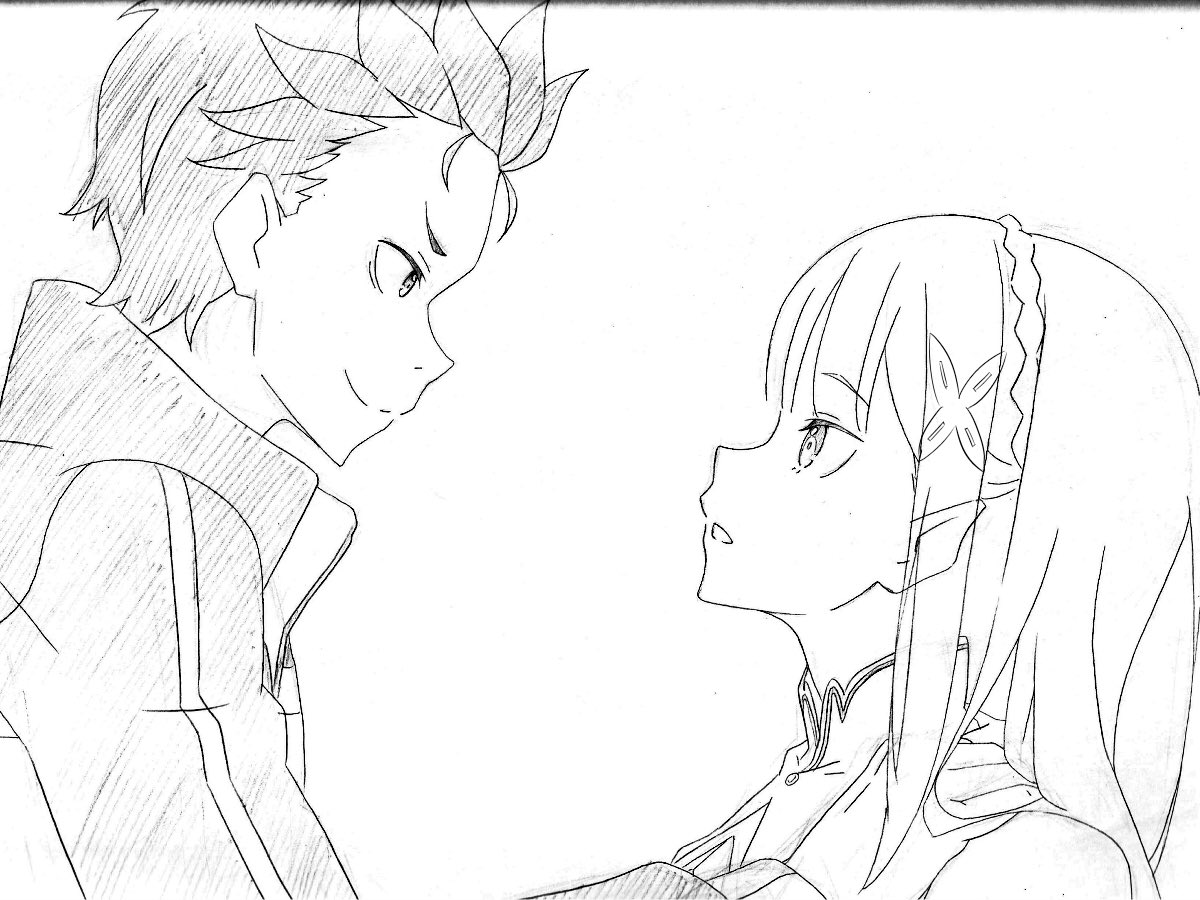 過去のらくがき⑥ 「好きだよ、エミリア」 #リゼロ #イラスト