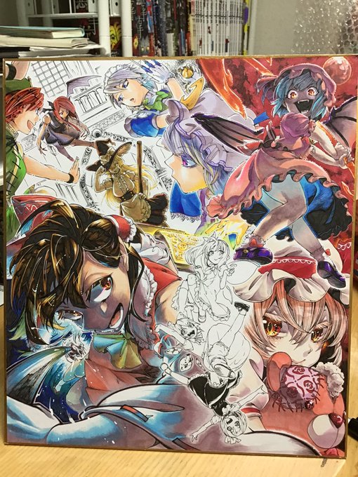 18 59 もう自機さん方入れ出したら色紙1枚じゃ無理やな( ̄∀ ̄) #東方Project #アナログ絵 #東方妖々夢 20/07/08 18:57