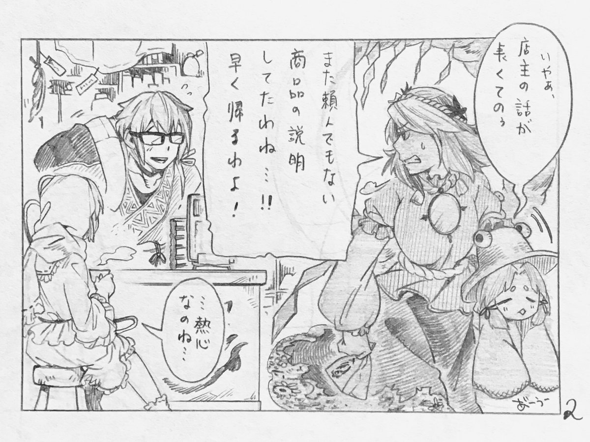 48 118 『お忍び、さとり先生』 #深夜の真剣お絵描き60分一本勝負 #東方project #森近霖之助 #諏訪子 #古明地さとり #アナログ #漫画 20/06/23 19:02