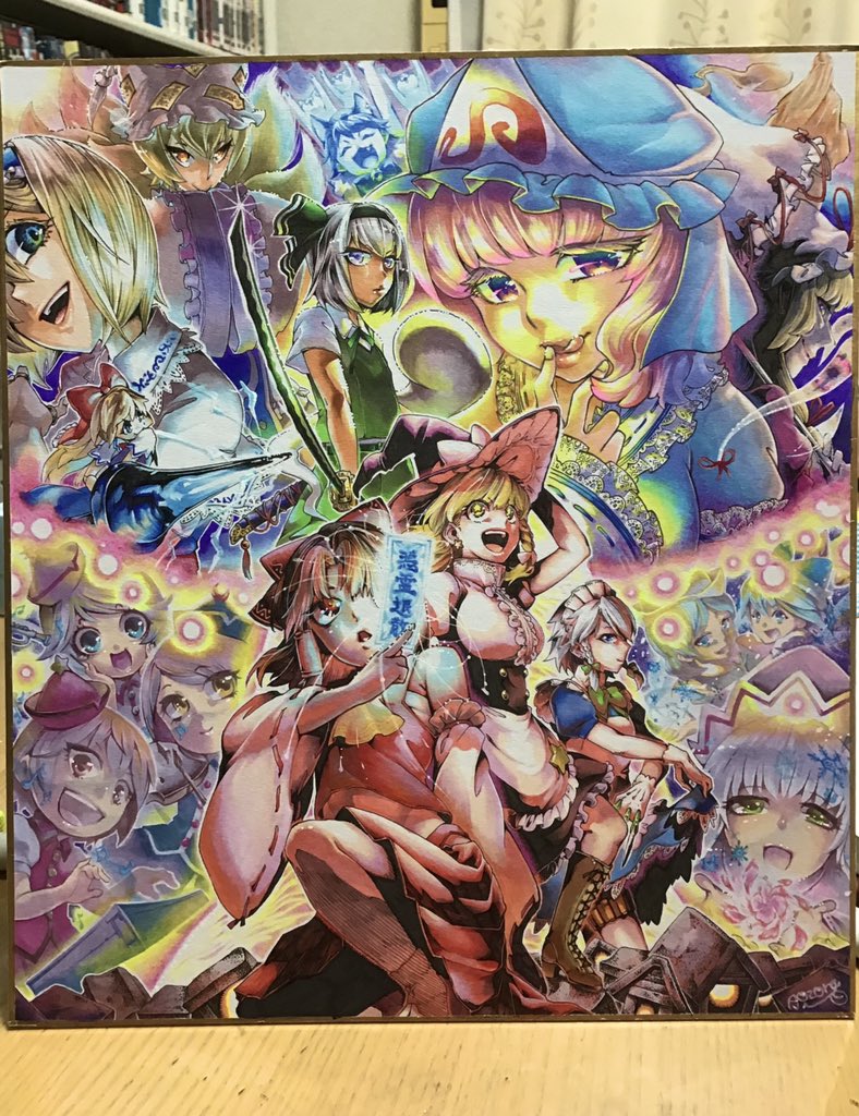 もう自機さん方入れ出したら色紙1枚じゃ無理やな( ̄∀ ̄) #東方Project #アナログ絵 #東方妖々夢