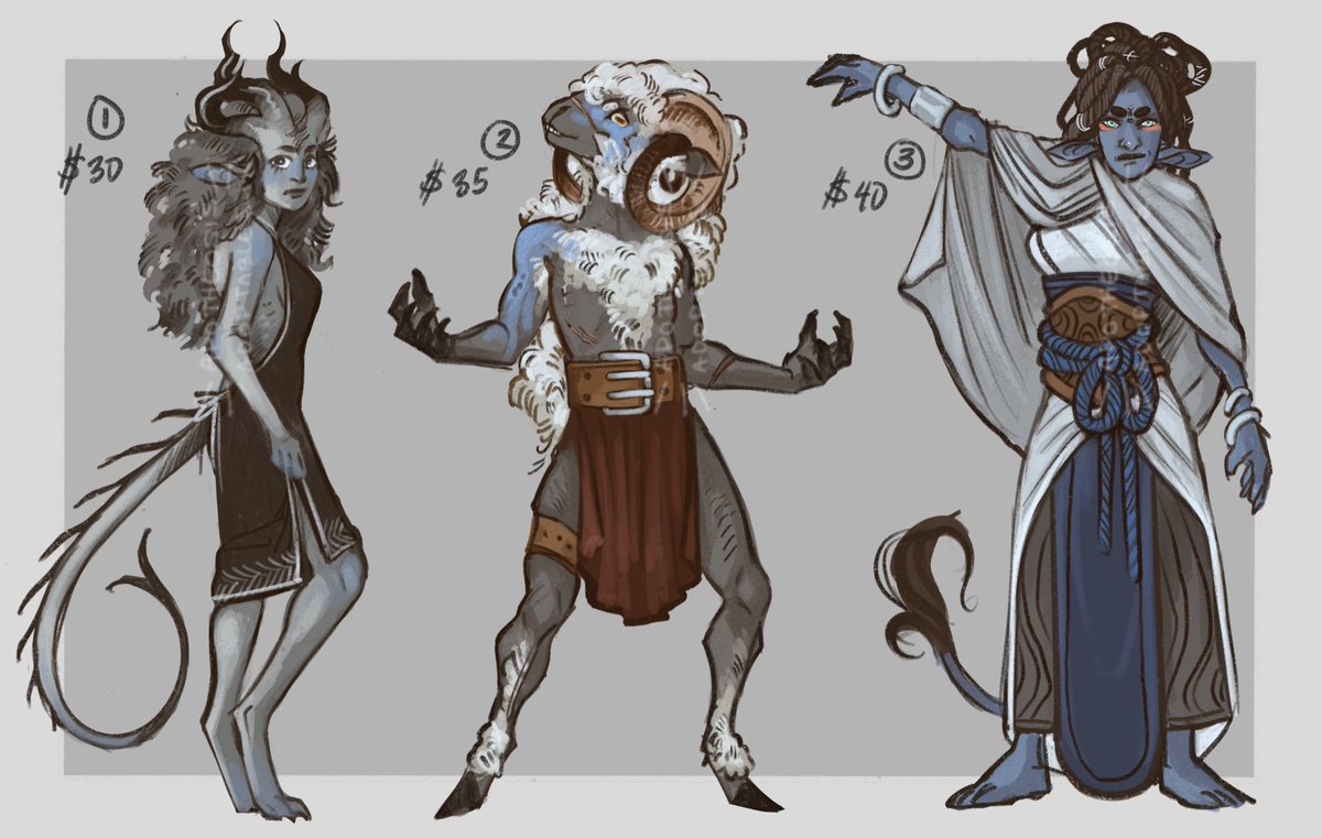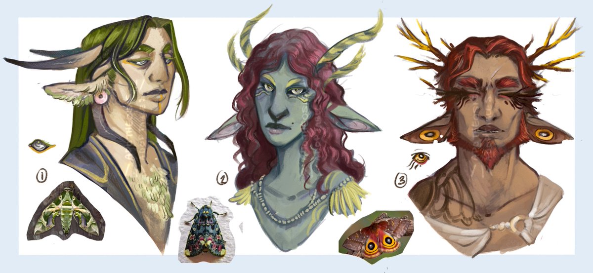 A sneaky adopt batch! Cursed/Fae-touched Tieflings based on moths c: $35/each - comment/dm to claim! #adoptables #dndart