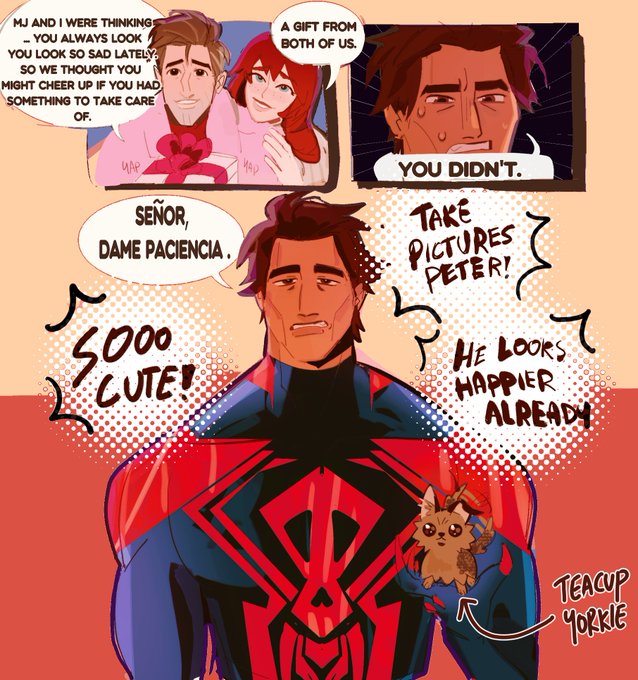 I just wanted to draw Miguel holding a tiny dog gonna be real with you guys. #MiguelOHara #ATSV #AcrossTheSpiderVerse