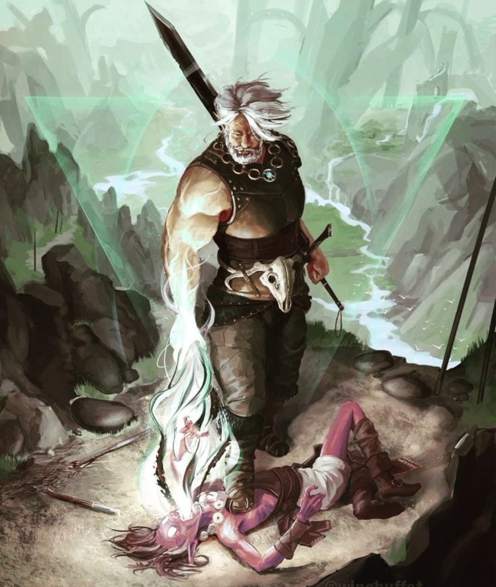 #DnD inspiration: Where the cliffs meet the sea there stands a village. A village which once honored the old traditions, but no longer & a cursed disease now plagues them. A warrior shamen is doing what he can...but it's not enough Art by @WingBuffet #dnd5e#ttrpg#dndart
