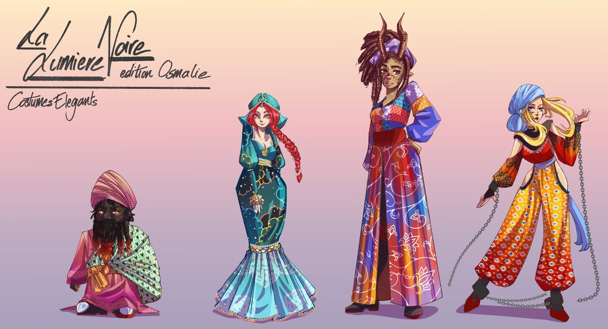 I've made my #ttrpg party's design costume for our new arc in a arabic/african like country ! I'm quite happy about it ! #clothesdesign #dndart #characterdesign #characterart