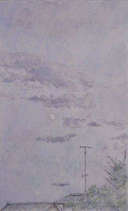 「仲秋の夕」 秋の風が感じられる旧暦8月、久びさに晴れた日の夕。雲間の月。 #アクアレル画 #水彩画