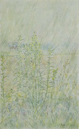 「8月の長雨」 ヒメムカシヨモギに降る雨。 テール・ベルトの雨が降る。 #アクアレル画 #水彩画