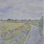 0 4 「稲田の秋」 収穫を待つ稲田と遊歩道。長い一年、今年も秋が来た。 #アクアレル画 #水彩画 22/10/23 20:35