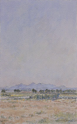 「秋気快晴」 雲ひとつない朝、遠く秩父の山々を望む。 #アクアレル画 #水彩画