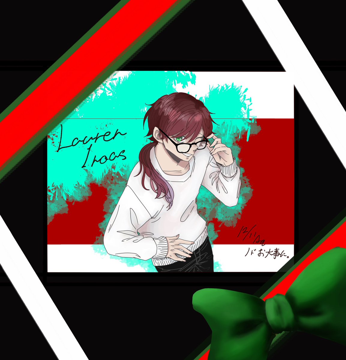 クリスマス仕様と通常版 眼鏡かけてるって聞いたから描いた #イロ絵す