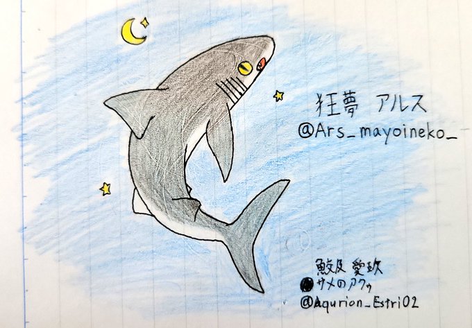 アルスさぁ〜ん!擬鮫化!! #擬鮫化 @Ars_mayoineko_ #絵描きさんと繋がりたい #絵好きさんと繋がりたい #絵柄が好みって人にフォローされたい #サメ #アナログイラスト デジタルもこの後描きます(*^^*)