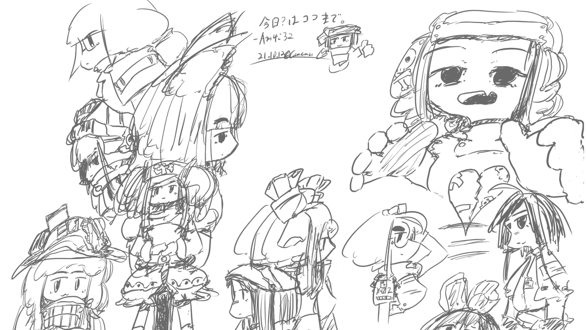 2 24 #お絵かき冬合宿2021 お疲れ様でした。 夜の部や4日目の午後などのみの参加でしたが楽しかったです。 21/12/30 01:21