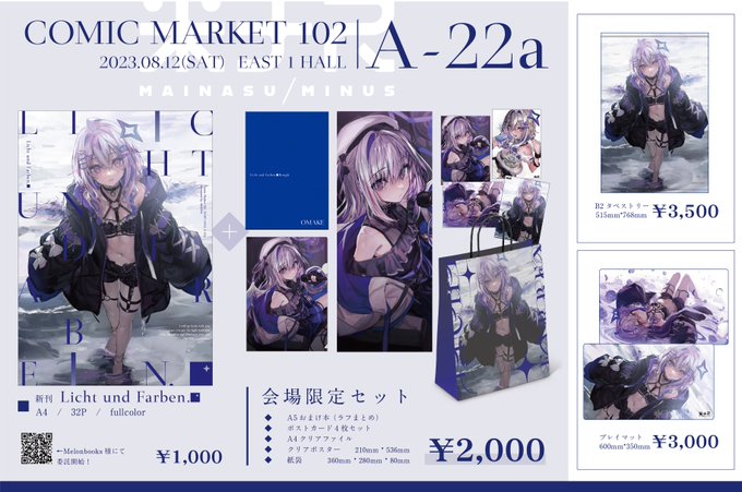 #C102 夏コミのお品書きです! 今回のスペースは 8/12(1日目)東1ホール A-22a になります! よろしくお願いします!!! 🍈🍈🍈melonbooks.co.jp/detail/detail.…
