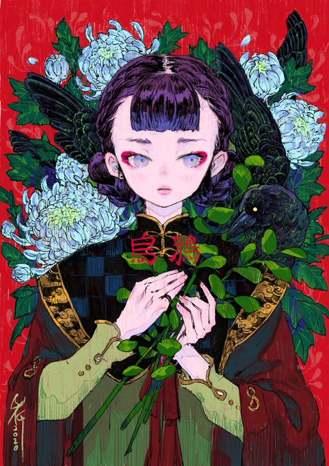 #dailystudy 국화, 소녀, 까마귀