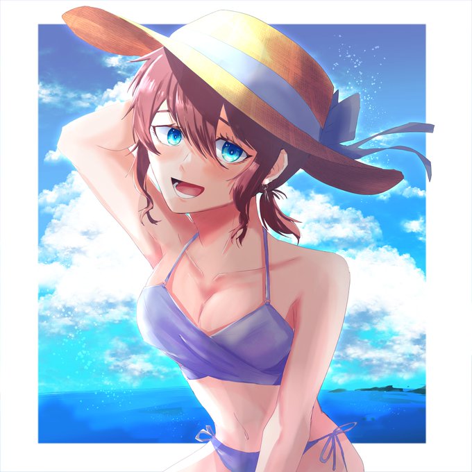 4 6 #HUION初夏イラストコンテスト2023 「もう夏だね」 初夏の雰囲気を少しでも出すために紫陽花っぽい色の水着にしたりしてみました⚓️ 23/06/15 19:48