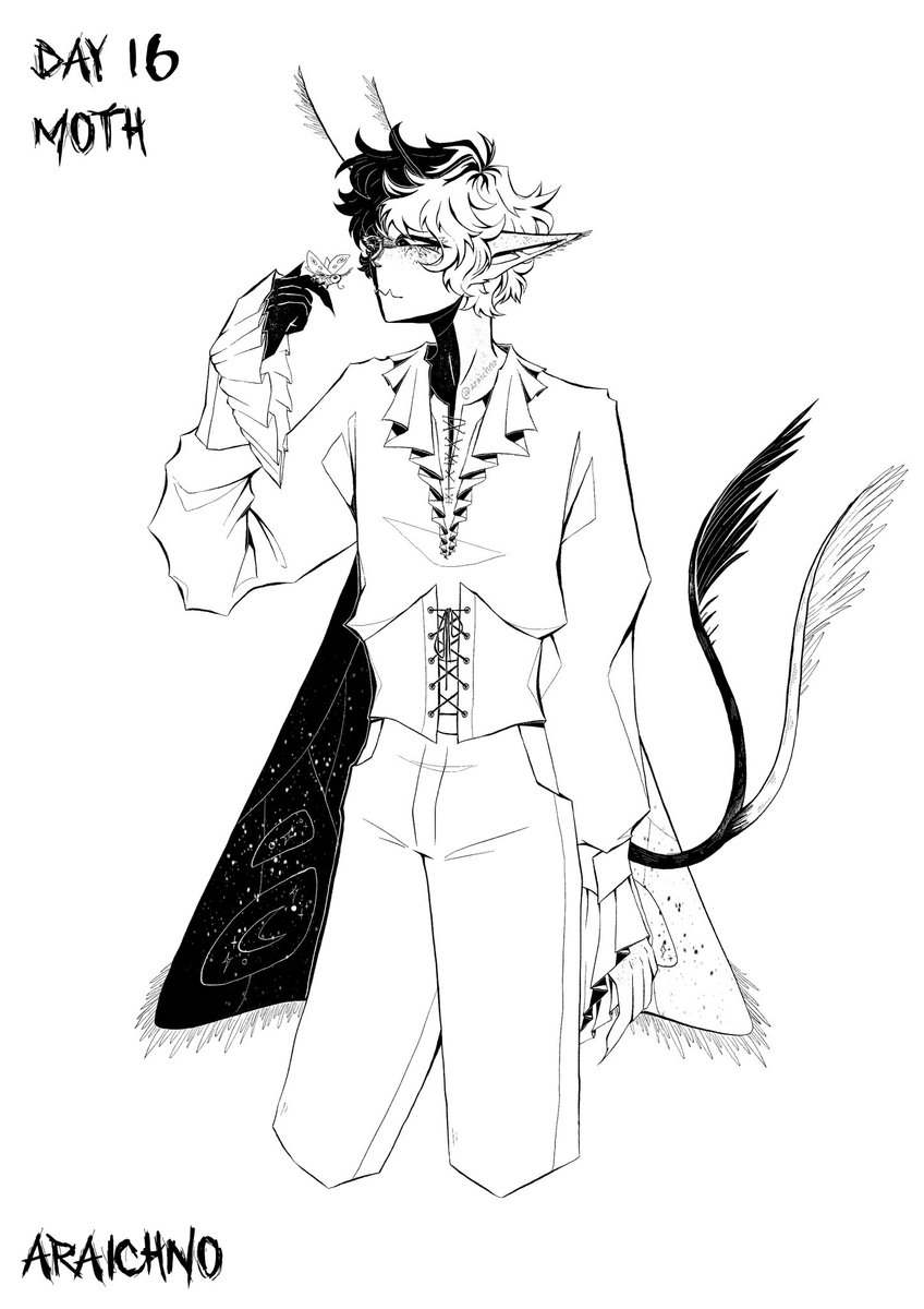 Day 16 I present to you… Mothboo with their pet moth #ranboo #ranbooart #ranboofanart #inktober #mcytart