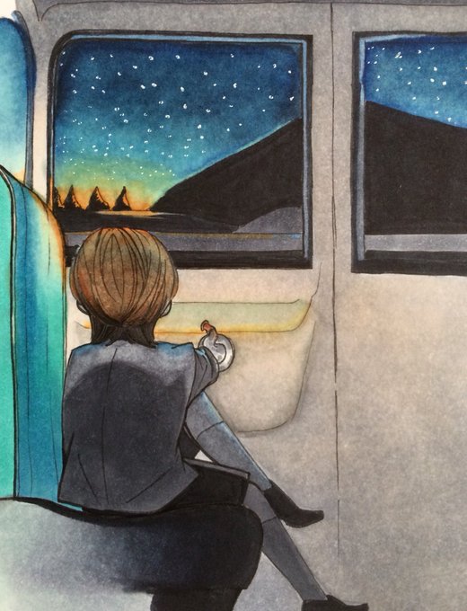 不慮の旅路の明け方 #一次創作絵師拡散フェス01 #自創作に狂っている人間と繋がりたい #アナログ作家フェス