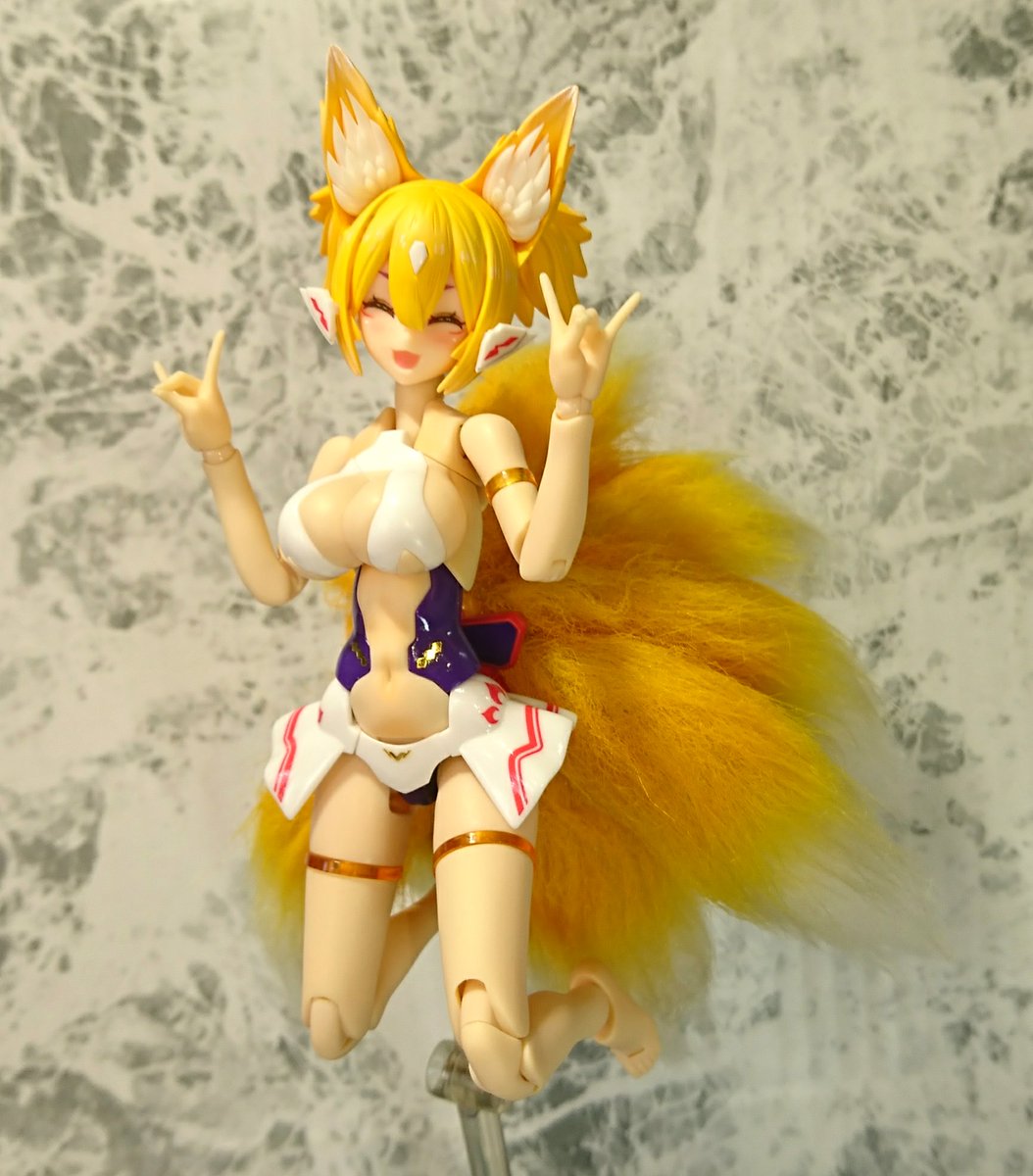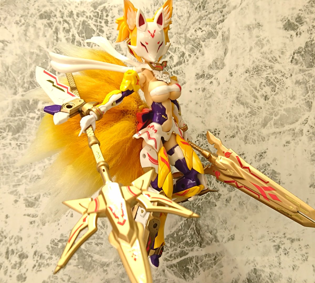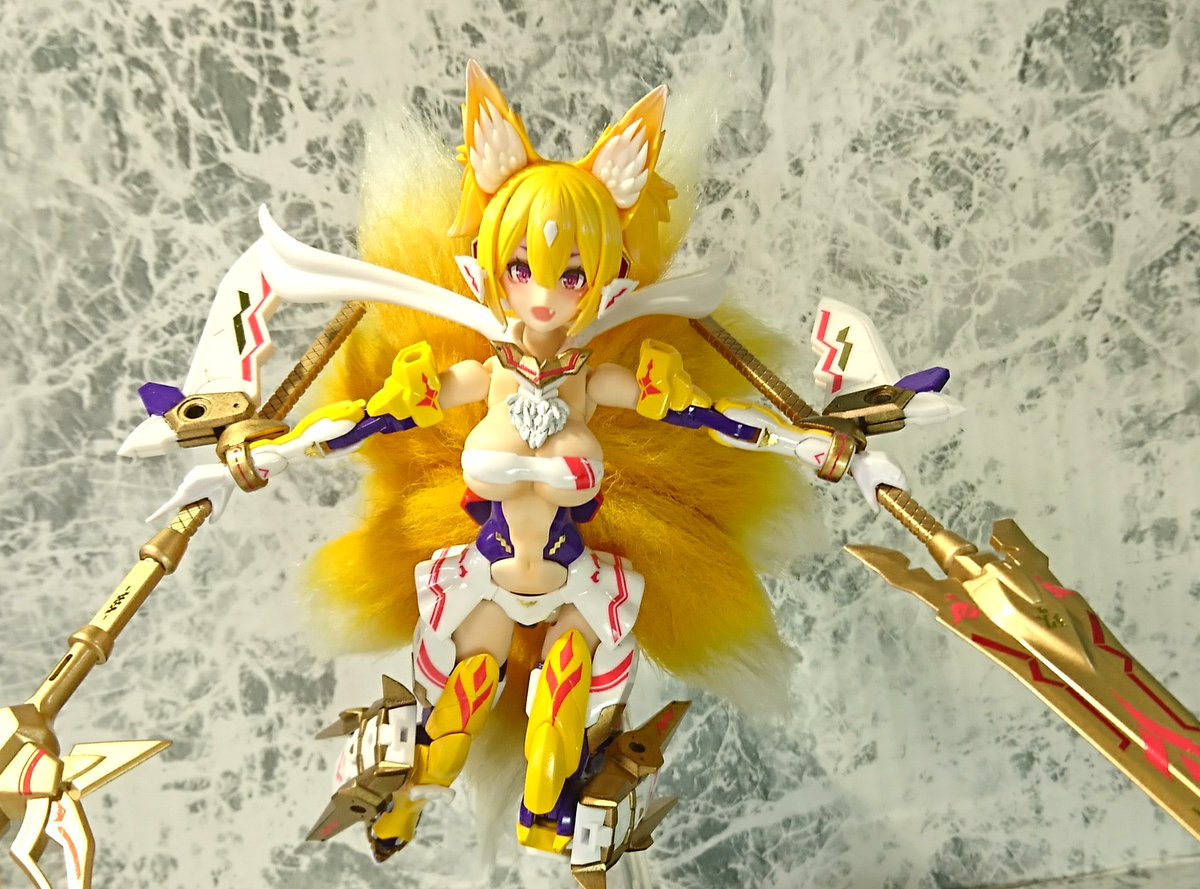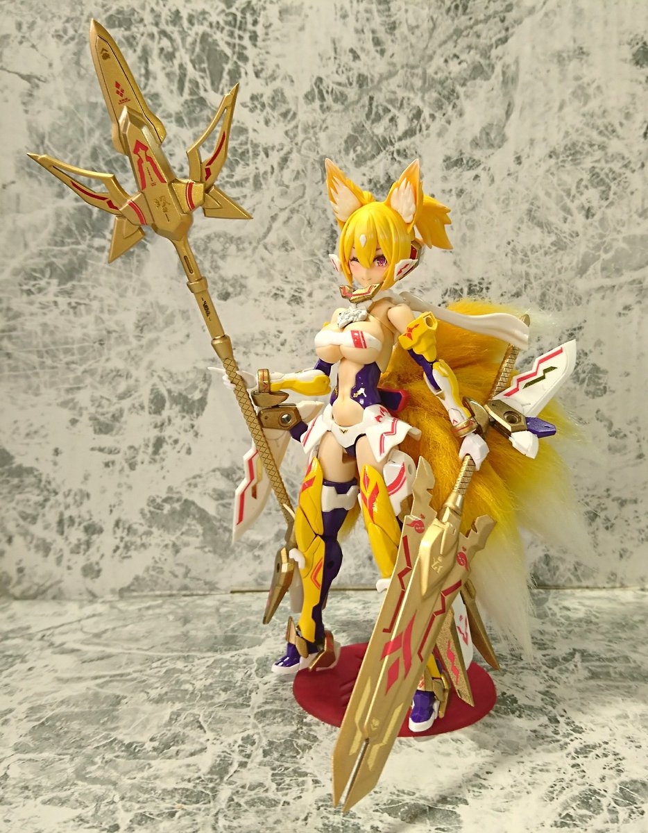 メガミデバイス「白面金剛九尾」を完成しました。 神獣化なった朱羅九尾の姿としてケモノ耳と九本の尻尾を付けました。こーん。 #メガミデバイス