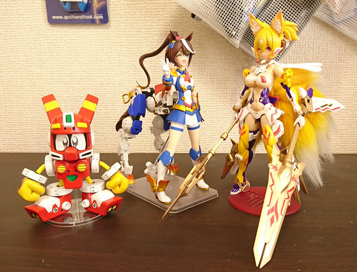 43 155 メガミデバイス改造で八雲藍バニー姿を完成しました。こーん。 使用した改造パーツ さいさん(@scy_005)のヘッドパーツ R.Z.さん(@RaidenZou)のフェイスパーツ muscutoさん(@muscuto)のバニー姿ボディ にく⑨さん(@metalmax64)の尻尾 です。 #メガミデバイス 23/07/08 18:31