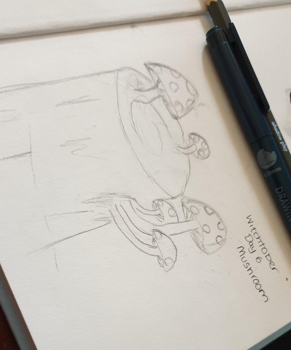 Witchtober Day 6 Mushroom I call this one "i tried and gave up so it's staying as a sketch." #sapintober #witchtober #inktober