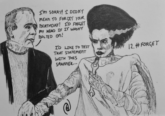 Back to keeping pace again now. Today's prompt for #inktober2022 was #forget so I thought I'd do something dangerous... Well, Frankenstein's Monster did on my behalf... #drawing #drawings #amdrawing #doomed