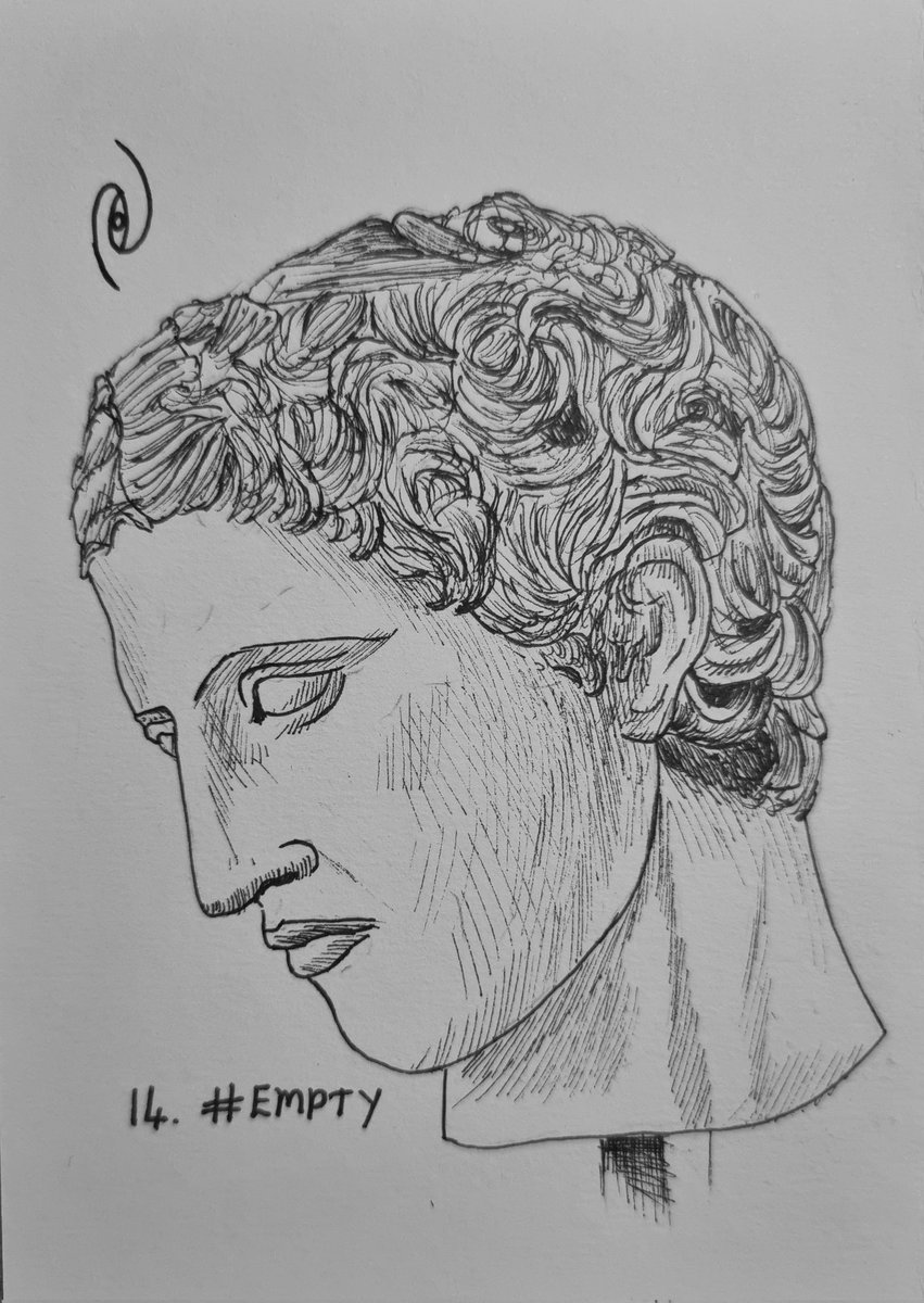 #inktober2022 prompt was #empty for Day 14... When young I thought ancient statues had their eyes closed... But in the classical period, they were painted. Time has robbed them of their painted raiment, so they've also lost their eyes. #inktober #drawing #drawings #amdrawing