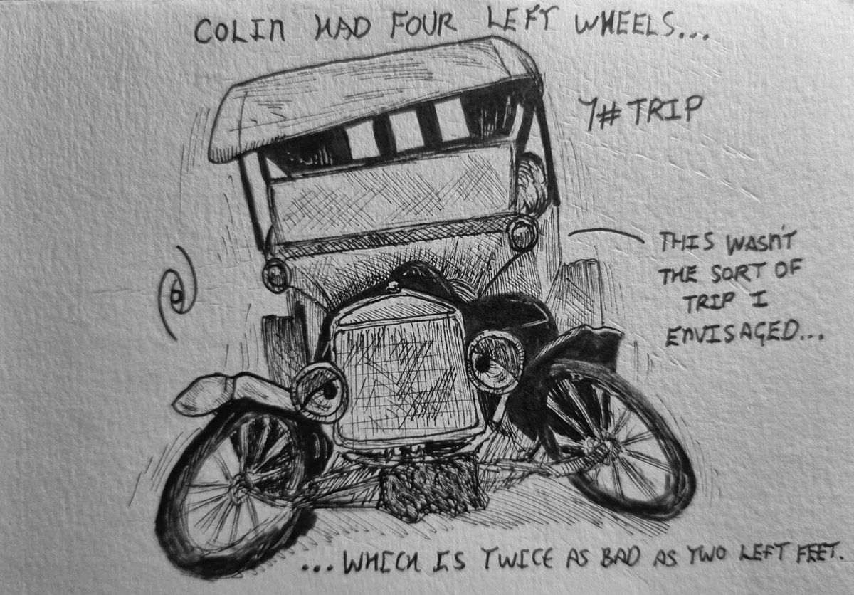 And we're a week in... Today's #inktober2022 prompt was #trip... This poor machine went for entirely the wrong sort of trip here...! #inktober #drawing #drawings #amdrawing