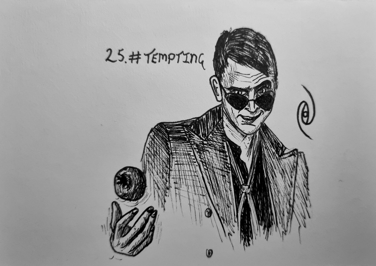 And then, to catch up a quick #tempting for #inktober2022 day 25... Sir Terry and Neil Gaiman this time. Good Omens. Crowley, who was of course, the serpent in the Garden of Eden... #inktober #drawing #drawings #amdrawing