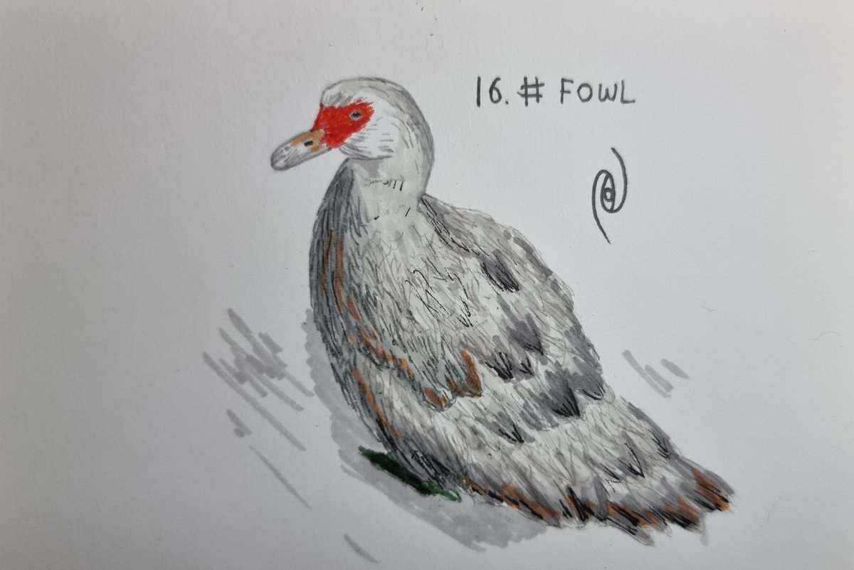 The prompt of #fowl heralds #inktober2022 day 16... This is Keith - the only Muscovy duck living in the local park. He beats up other ducks and even has a go at the Canada Geese,but avoids the swans because he isn't a complete idiot. #inktober #drawing #drawings #amdrawing