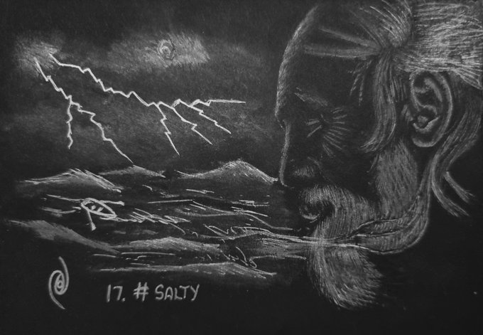 Day 17 of #inktober2022 and #salty was the prompt... Sea is salty! There's no real suggestion that Manawyddan was a sea god in Welsh mythology, but he's cognate with the Irish Manannan Mac Lyr who WAS (the Isle of Man is named after him). #inktober #drawing #drawings #amdrawing