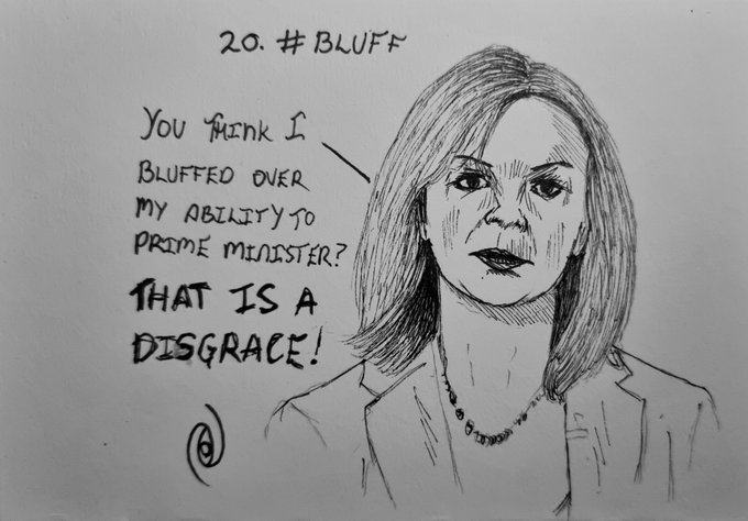 #bluff was the prompt for #inktober2022 day 20... Our little-lamented Prime Monster resigned at JUST the right point. She prevented me having to use the corny card trick drawing I was originally going with... #inktober #drawing #drawings #amdrawing #politicaltwittery