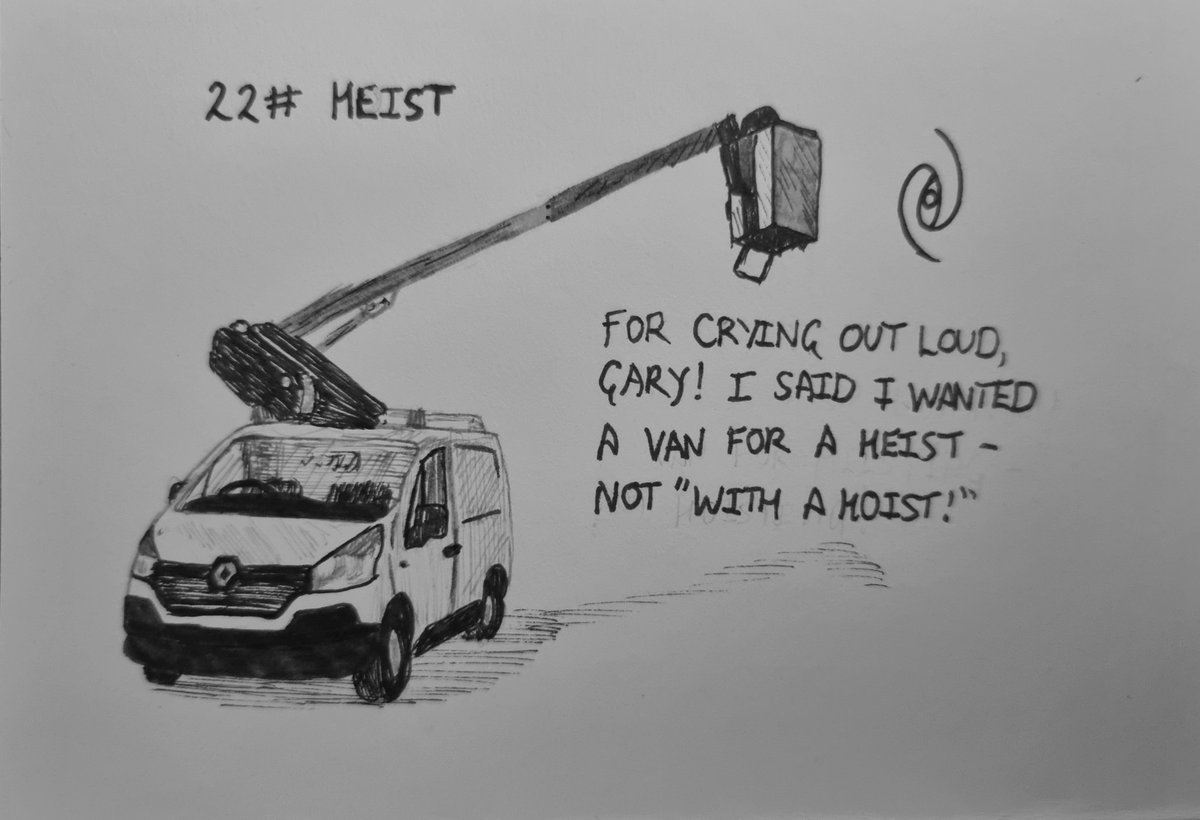 Another quick one, because it's 4.00am... #heist was the #inktober2022 day 22 prompt... BUT DID YOU KNOW that "heist" is actually a 19th century American dialectical variant of "hoist"? Well, it is... #inktober #drawing #drawings #amdrawing #etymology
