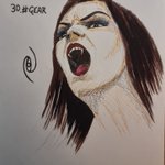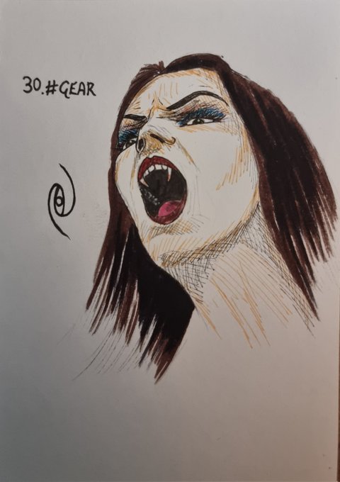 Prompt 30 for #inktober2022 was #gear - I got two meanings in... "Laughing Gear" is a slang term for the mouth. But gear also refers the tools of your trade. A vampire only needs its teeth. Gear in Laughing Gear 😁 #inktober #drawing #drawings #amdrawing #vampires
