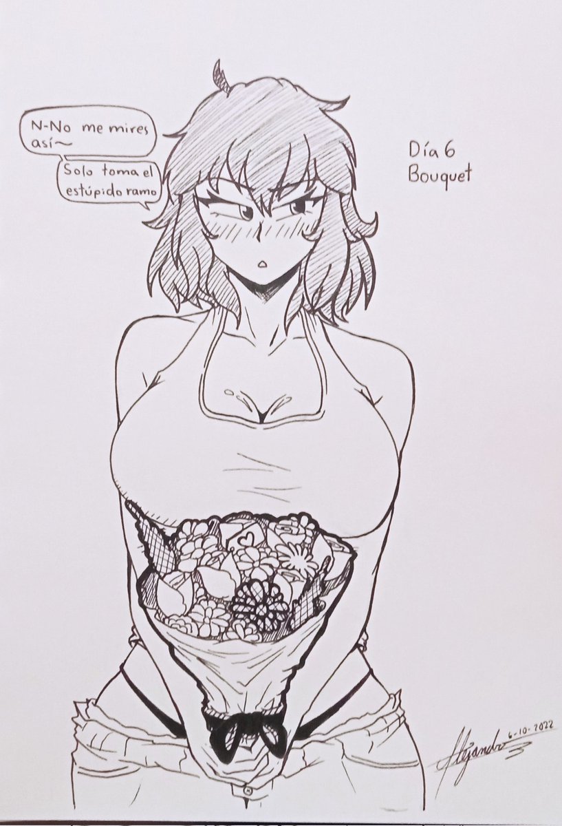 Día 6 completado!! . Tema: Bouquet . #inktober2022 #Inktober #inktober2022day6 #DAY6 #bouquet #INK #06Oct #Octubre #sketchbook #Flowers #anime #animegirl