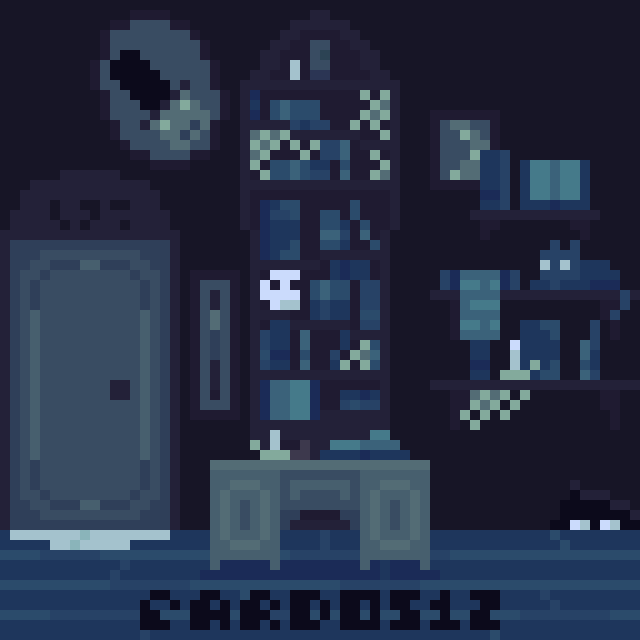Gloomy #bookstore in the night for @Pixel_Dailies! What is happening behind that mysterious door?😮 #pixel_dailies #pixelart #ドット絵 #aseprite
