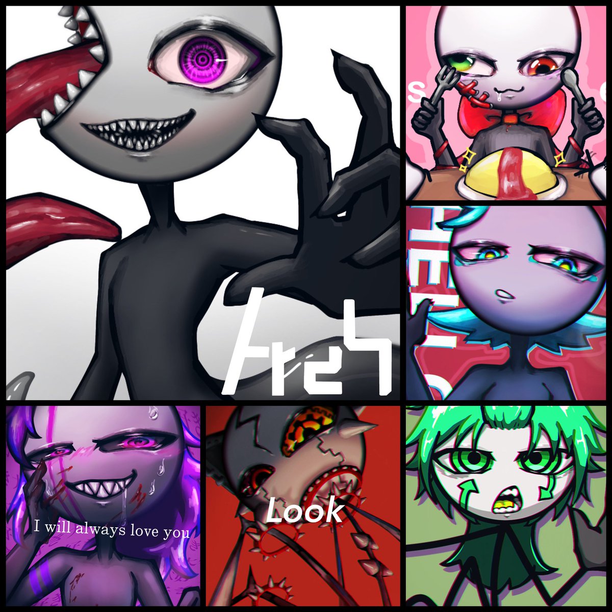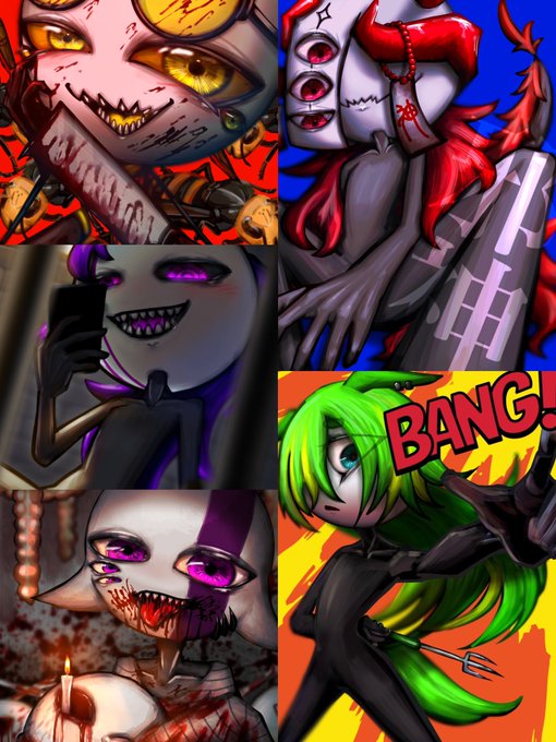 #誰のキャラデザだゲーム のりまきさん主催の『テーマ:グリム童話×恐怖症』に参加させて頂きました 私は「子供たちが屠殺ごっこをした話」 を描きました! 私がデザしたのはどれかな? ツリーに投票乗っけてます 是非✨