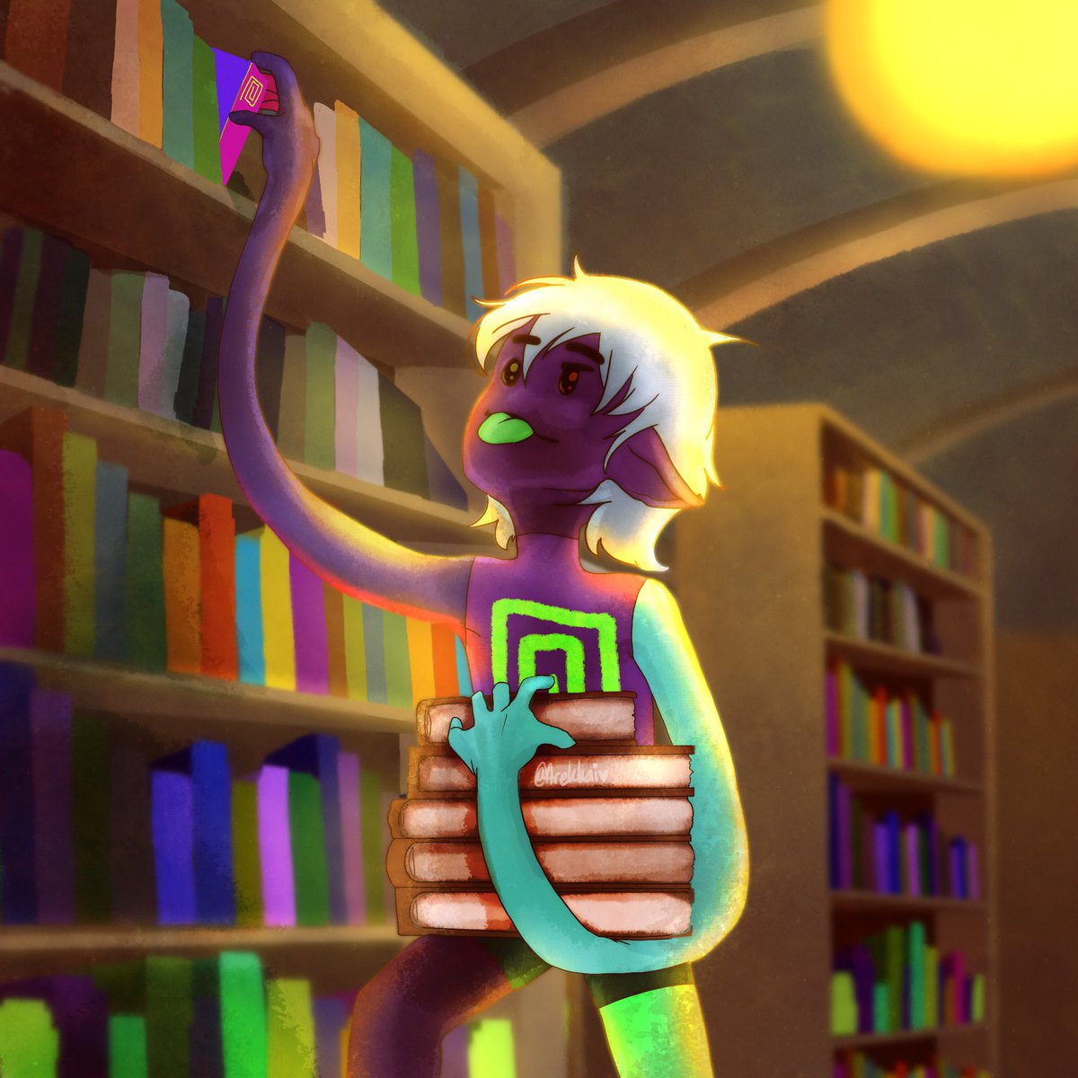 Day 17: BOOK !! C!Karl in his library !! He’s just a gangly guy !! #karljacobsfanart #talesfromthesmpfanart #dsmpfanart #DSMPtober #chewygutsDSMPtoberkarl
