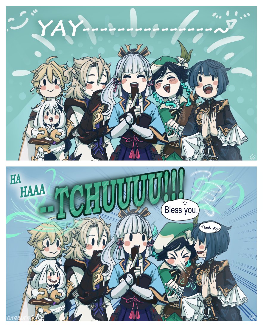 🎵Welcome home, my dear friend🍃 (2/2) #Genshinfanart #venti #namelessbard #amos #Ragnvindr #Gunnhildr