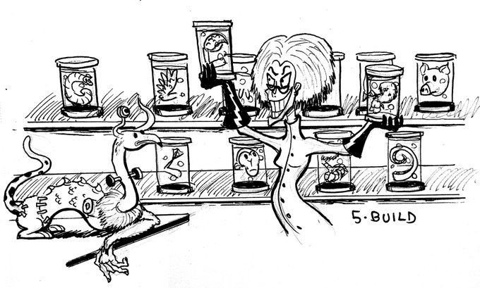 #inktober2019 #day5 build. A mad cientist is trhiing to make the perfect hybrid. #madscientist #hibrid #science #evil #monster #inktober #traditionalart #madhair #mrpotatohead #ink instagram.com/p/B3QU6vODylL/