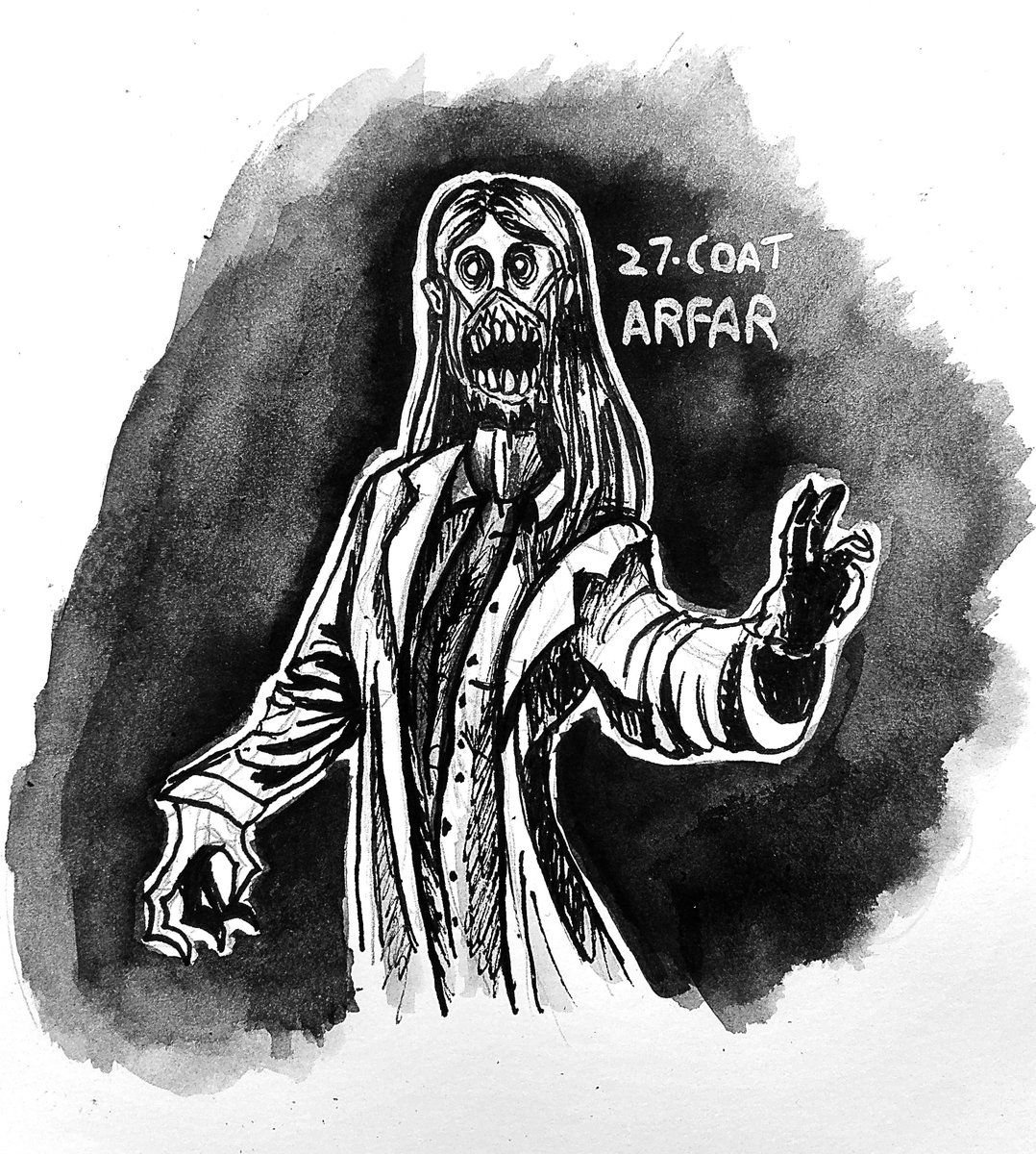 #inktober2019 #day27 coat. Zombie in a lab coat. #zombie #zombiedoctor #teeth #feral #meateater #coat #labcoat #monster #inktober #ink #scientist #doctor instagram.com/p/B4JC4uZnNW5/