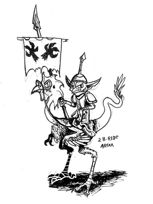 #inktober2019 #day28 ride. Quick sketch of a goblin cockatrice rider. #fantasy #rider #inktober #cockatrice #monster #barbarian #raider #sketch #inktober #chicken #monster #dinosaur #cartoony instagram.com/p/B4LZ7FXneY-/