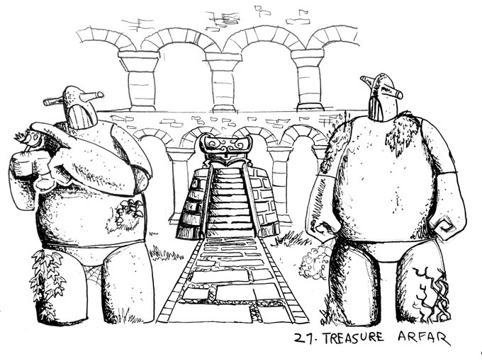 #inktober2019 #day21 treasure. Looks like someone found the most valuable treasure. #treasure #friendship #golem #love #bird #petting #pettingbird #guardian #chest #temple #fantasy #ancient #statue #protecting #watch #ink #sketch #treasurechest #bird instagram.com/p/B35eRyKHdTM/