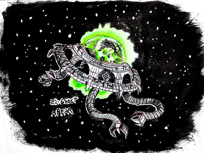 #inktober2019 #day21 ghost. Most people have heard about ghost ship, but what about a ghost SPACEship? #inktober #spaceship #ghost #ghostship #space #alien #ufo #ink #greenmarker #skull #greenskull #tentacle #roboticarm #green #greenlight #ghostspaceship instagram.com/p/B38E2UqHWZu/