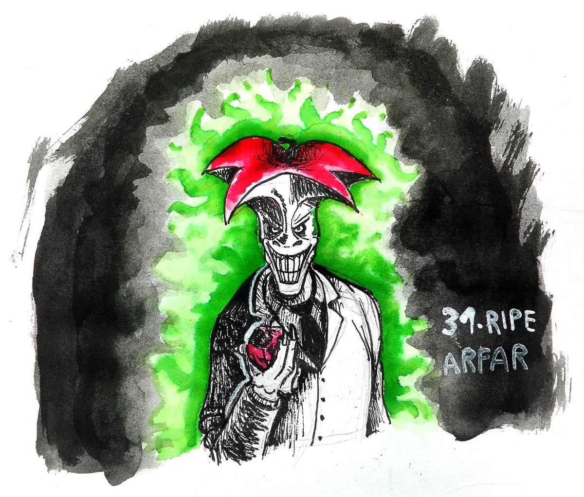 #inktober2019 #day31 Ripe. This is the Apple man from a reeeally obscure tv series named "Wicked the apple man". And with this I end my first Inktober, yay #inktober #wicked #appleman #ripe #rotten #evil #ink #coloringpen #watercolor #ink #inktober instagram.com/p/B4TCW2an1_C/