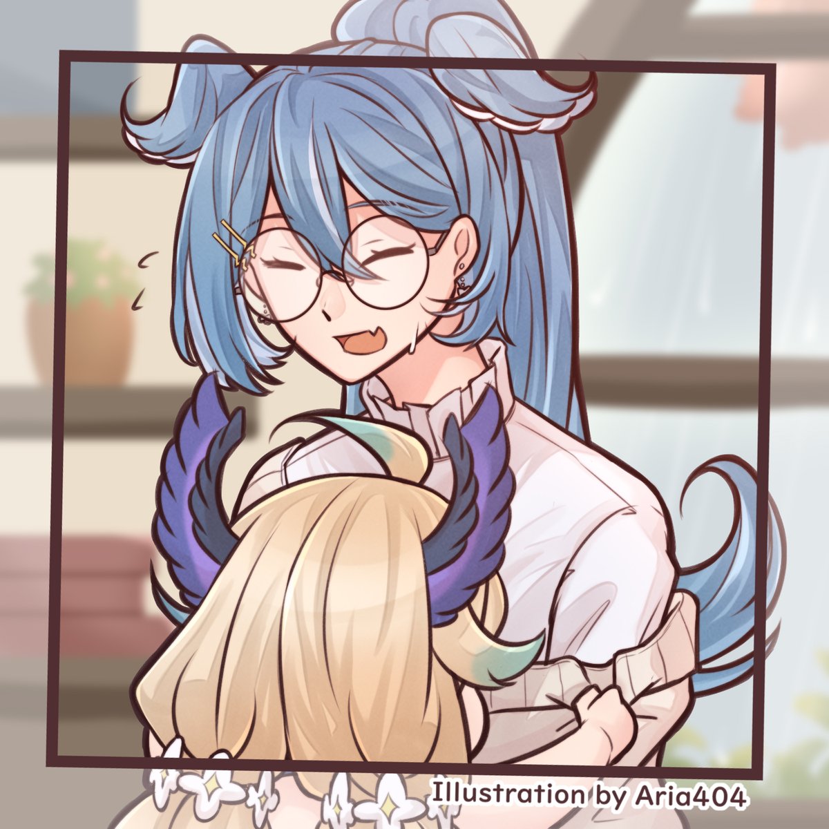 Hug I can't help but draw this after Elira's message to Enna in the stream 💦 Anyway congrats to Elira's new outfit 💐 It's sooooo cute I love it so much! #絵リーラ #pendorART #エナーアート #Palouette